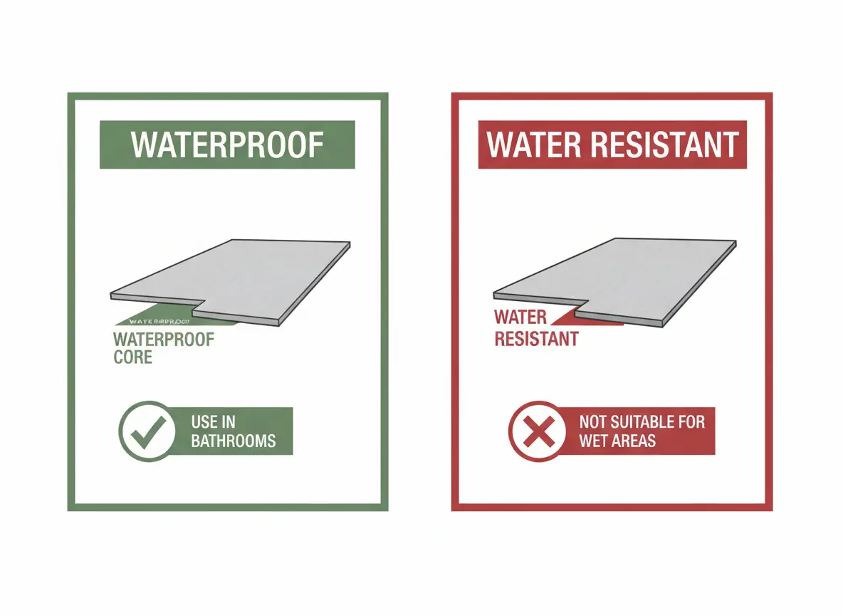 They bought water resistant LVT thinking it was the same as waterproof. It’s not. Water resistant means it can handle a splash. Waterproof means it can handle a wet bathroom. One letter difference on the label — thousands of dollars difference when it fails.
